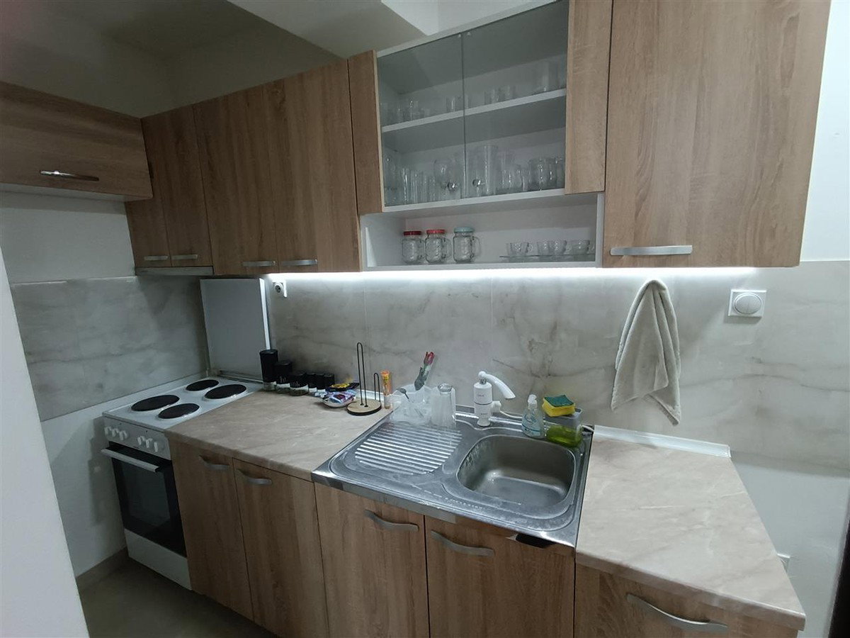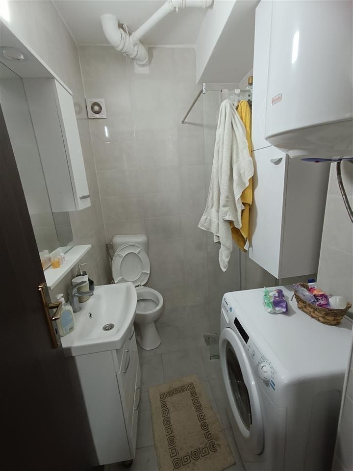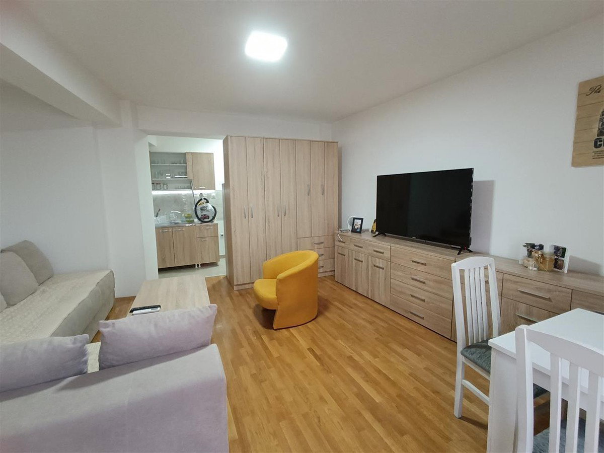 CODE 458 A fully furnished modern studio apartment of 32 m2 is available for sale. The apartment is located on the 3rd floor in a relatively new building. It features an open-plan living room with a kitchen, offering a functional and comfortable living space. It includes 1 fully equipped bathroom. The apartment is southeast-facing, providing excellent natural light. A private outdoor parking space is included. With its modern design and practical layout, it is ideal for both living and investment. The price is 76000 euros.