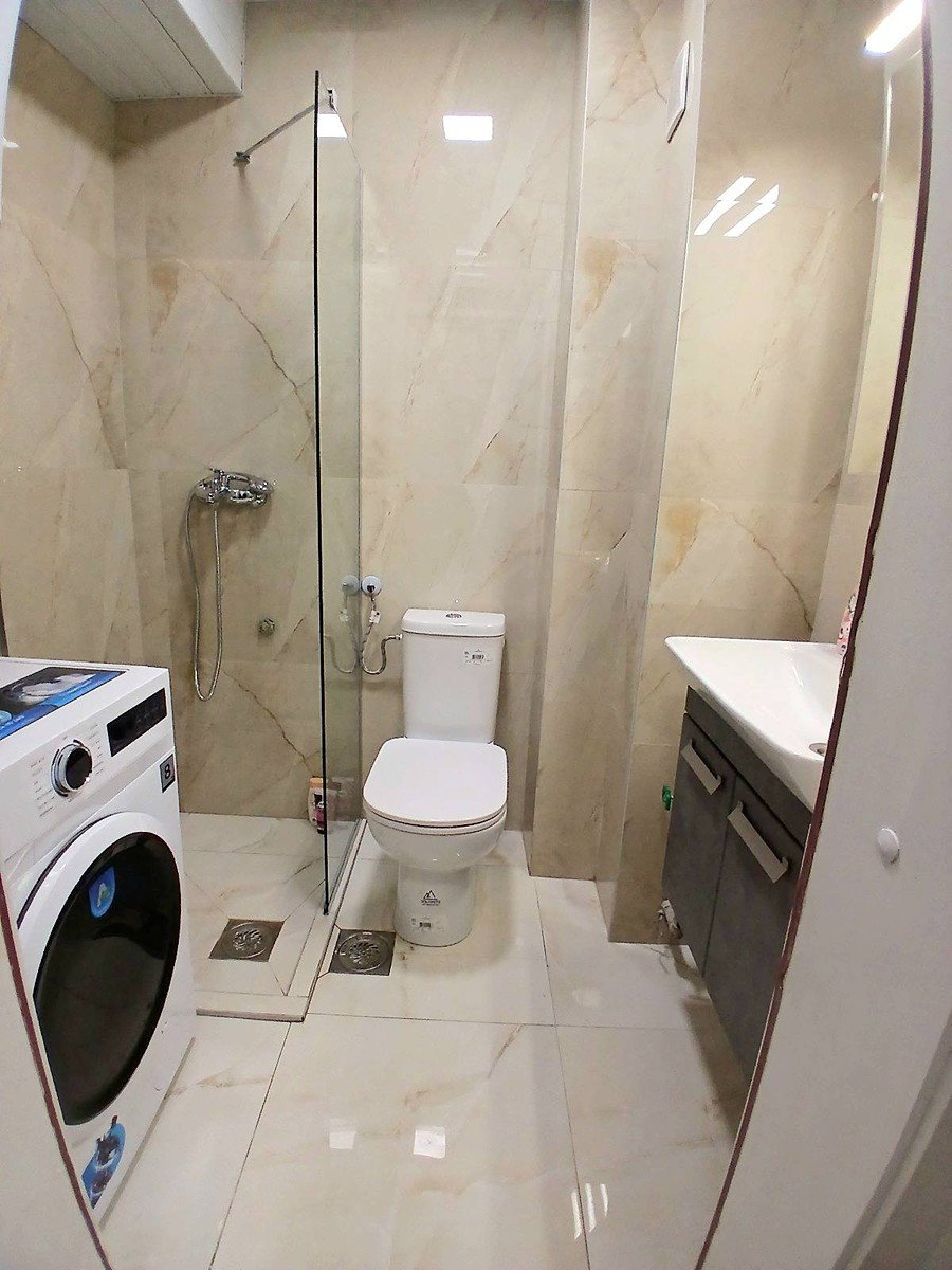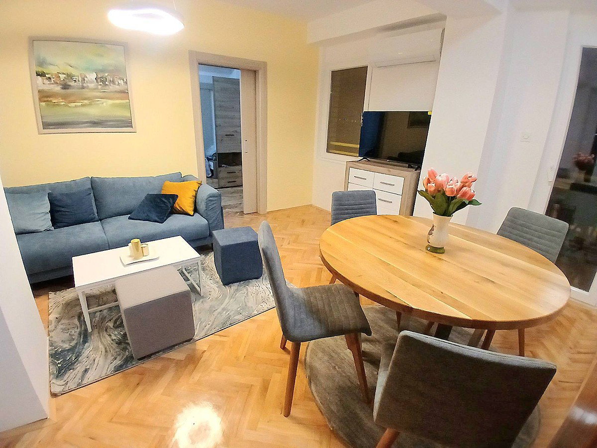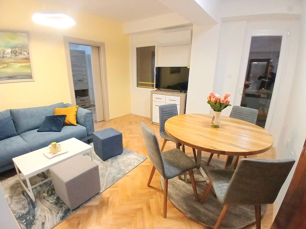 This fully renovated and furnished 45 m² apartment for rent is located near the railway station in Skopje. It includes 1 bedroom, a living room, kitchen, bathroom, and terrace. The apartment is equipped with new furniture and new appliances. Heating is provided by an inverter air conditioner. Free parking is available. It offers a comfortable and move-in-ready living space. Monthly rent: €350.