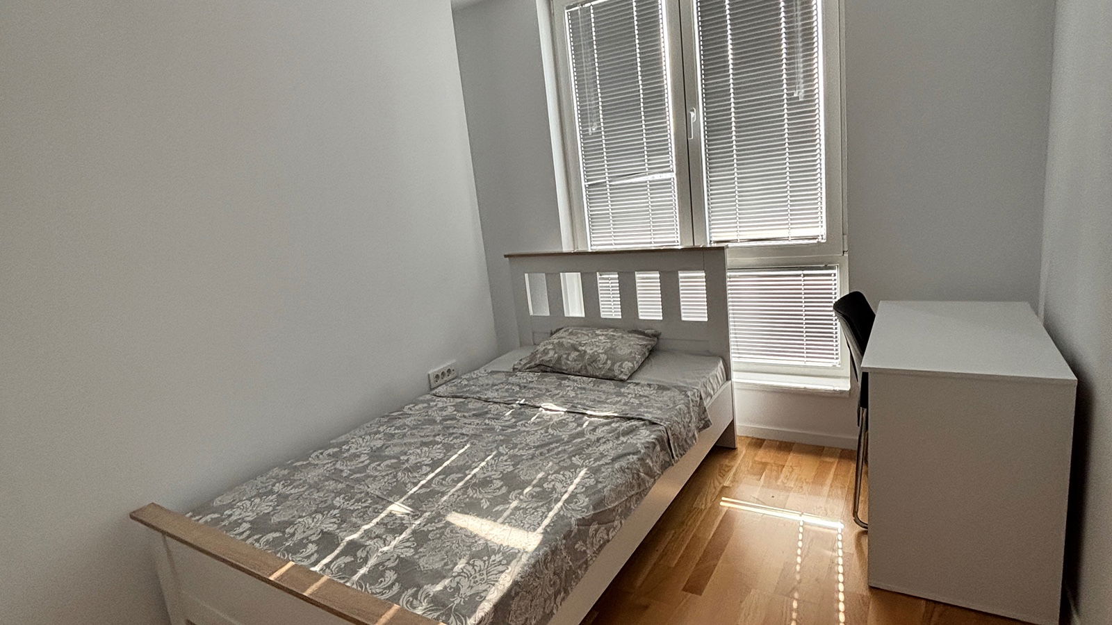 This apartment in East Gate Living features a modern open-plan kitchen and living room, a balcony, and a scenic terrace. It is just steps away from public transportation and very close to markets, restaurants, and shopping centers. It also offers easy access to green areas and parks. Long-term rental is preferred.
