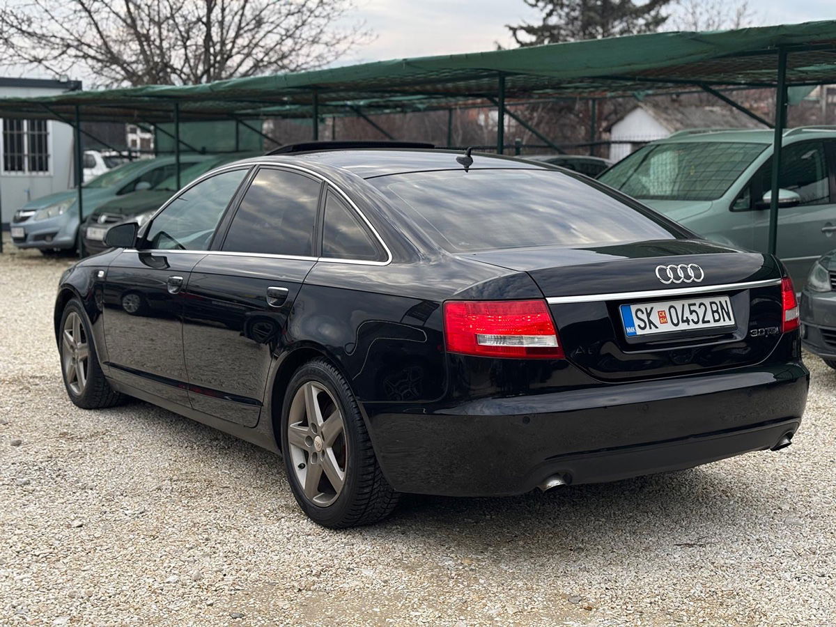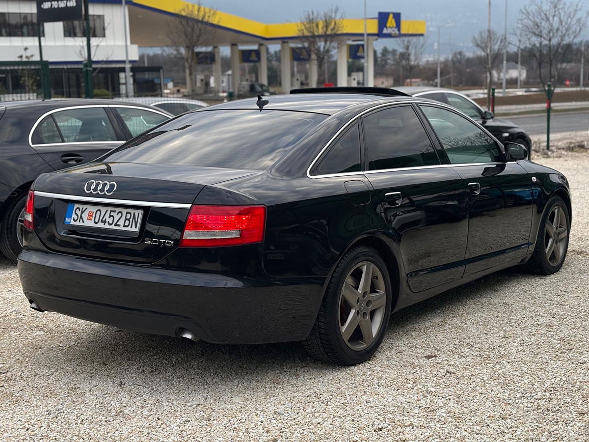 Audi A6 3.0 TDI 224 КС, модел 2007, автоматик. Регистриран и редовно сервисирано, со зимски гуми и максимално зачувано. Со целосна опрема: команди на волан, темпомат, шибер, двозонска клима, кожни седишта, Bi-Xenon светла и color борд компјутер. Моќно и комфорно возило подготвено за користење.