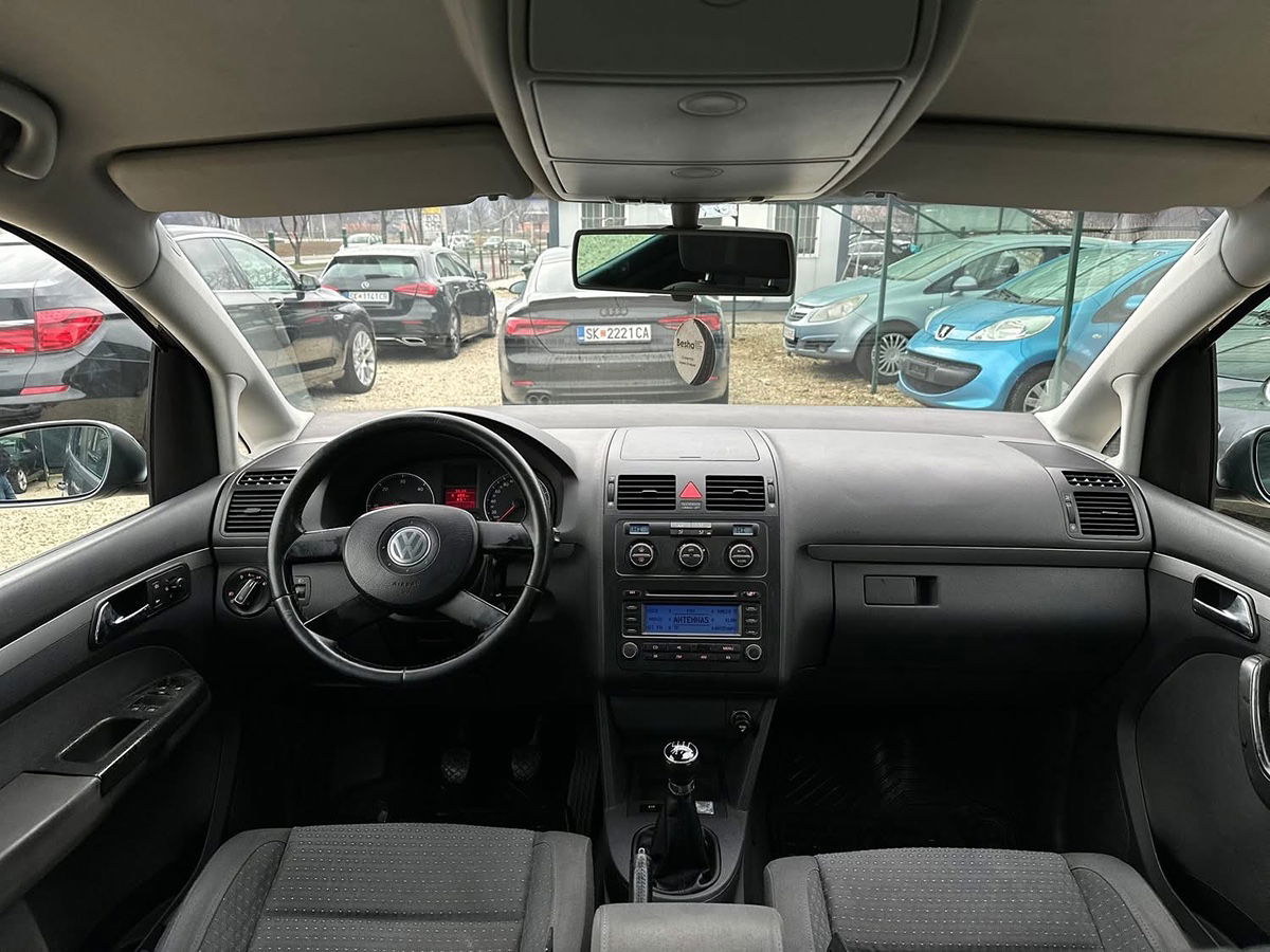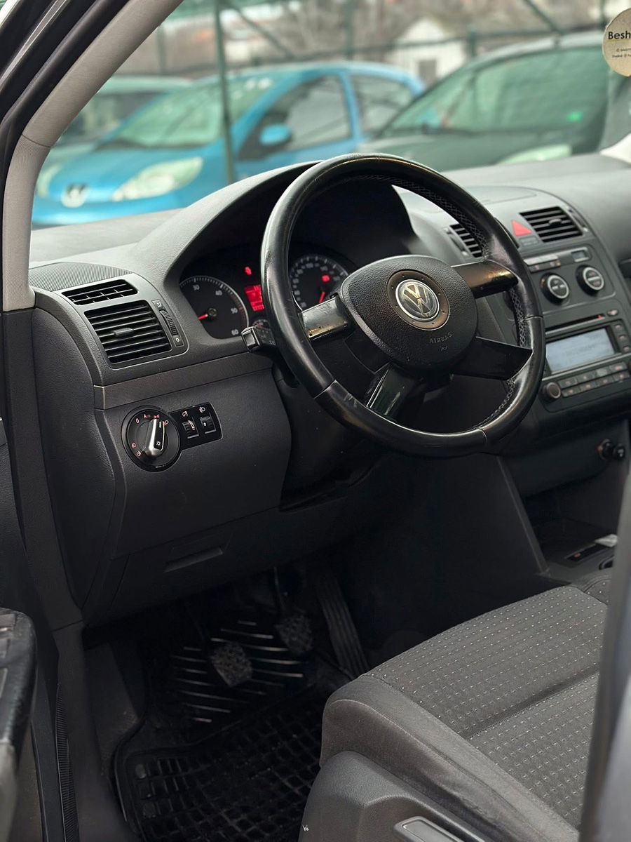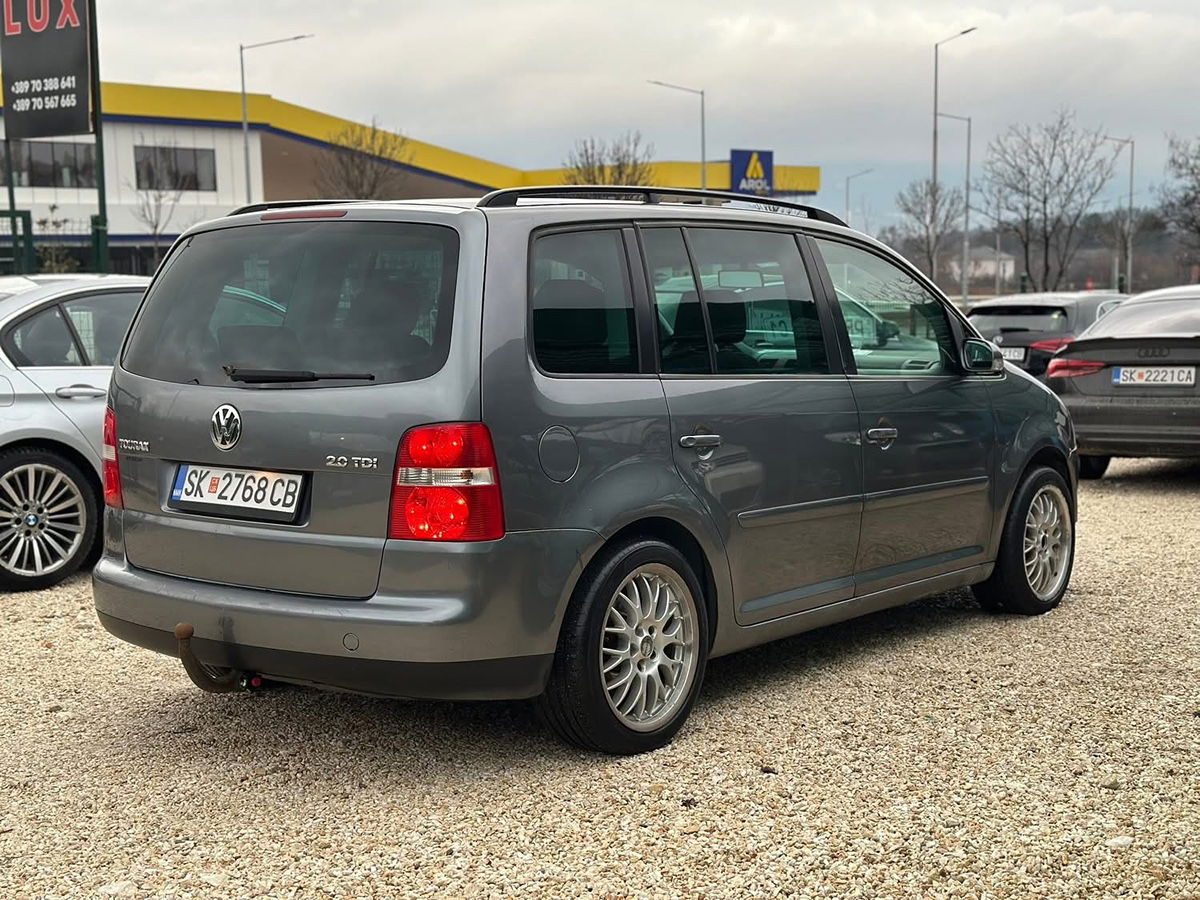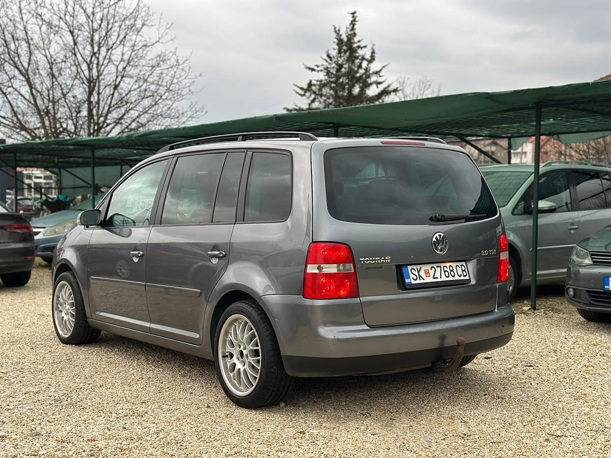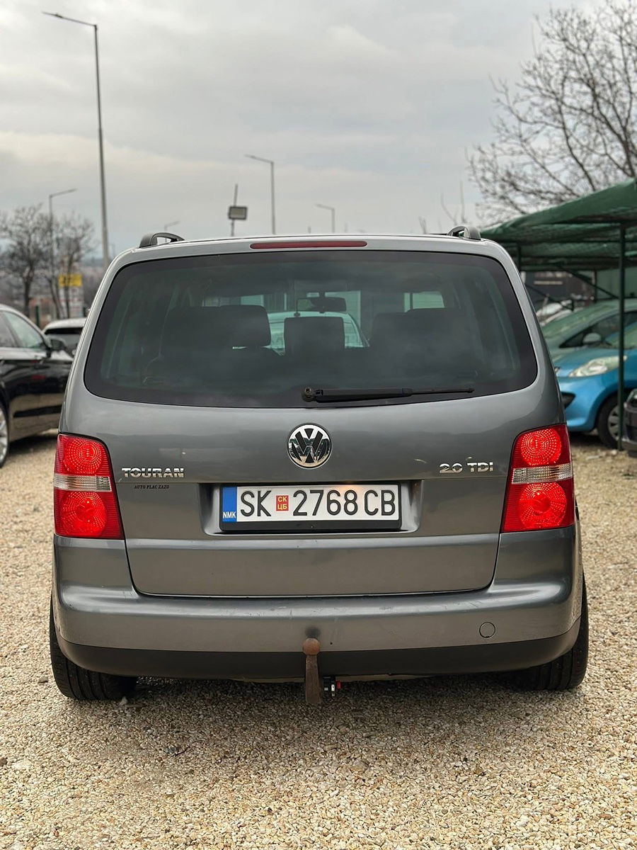 VW Touran 2.0 TDI 103 kW (140 КС), модел 2006, со 6-брзински мануелен менувач и 7 седишта. Регистриран до 12/2026 со зелен картон. Со целосна опрема: климатроник, темпомат, борд компјутер, кожен волан, електрични стакла и ретровизори. Просторно и практично семејно возило подготвено за користење.