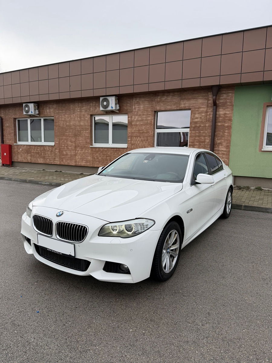 BMW 520d F10, модел 2011, во одлична состојба и редовно сервисирано без потреба од вложувања. Со високо ниво на опрема: Head-Up Display, M-Sport ентериер (М-волан и М-Sport седишта), греачи на седишта, Professional голема навигација и предни/задни паркинг сензори. Луксузно и подготвено за користење седан возило.