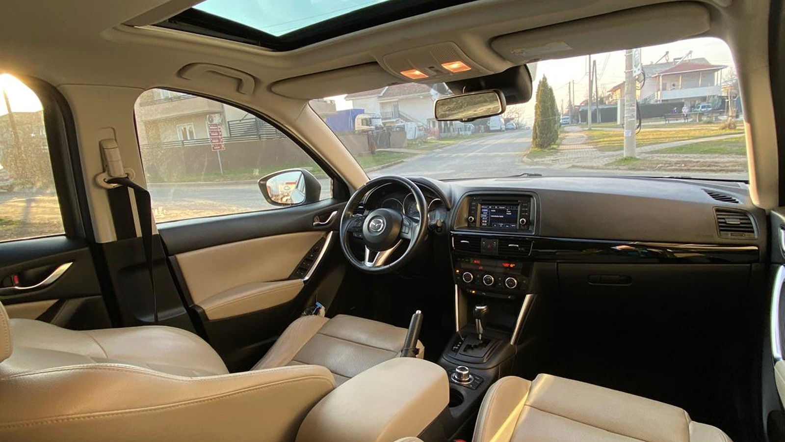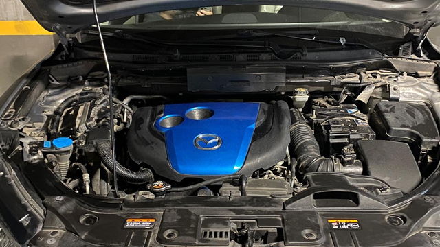 Mazda CX-5 2.2 SKYACTIV-D AWD автоматик, модел 2012. Со 175 КС дизел мотор со два турбополначи и 6-брзински автоматски менувач. Просечна потрошувачка од 5.5L/100km. Потполно опремен: кожен ентериер, греачи на седишта, навигација, камера за назад, паркинг сензори, Bluetooth, LED дневни светла и 19” тркала. AWD погон со систем за следење на лента и предупредување за мртва точка.