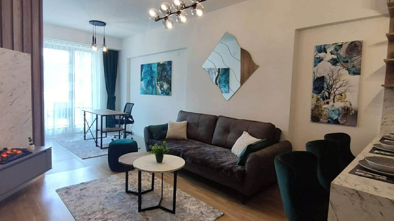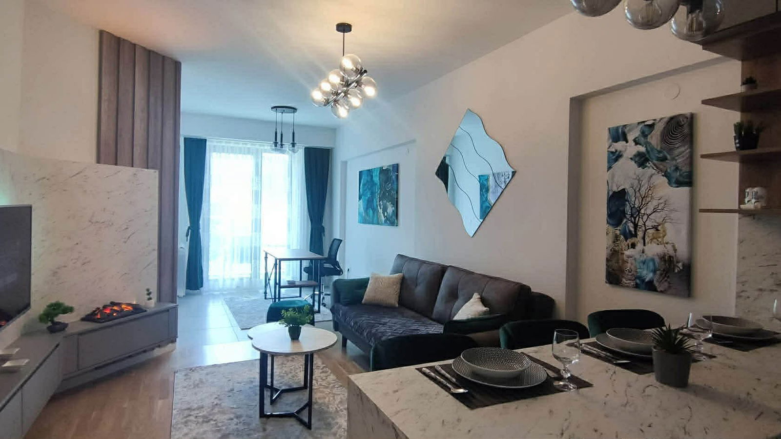 Станот располага со модерна кујна со дневна соба во отворен концепт, балкон и тераса со поглед. На пешачко растојание до јавен превоз, маркети, трговски центри и ресторани. Погоден за долгорочно изнајмување.