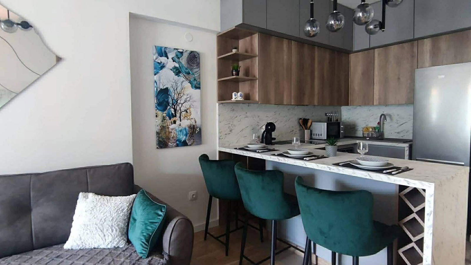 Дневен Наем Стан | Скопје Центар | 48 m², 2 соби, Среден кат, Луксузно наместен. Блиску до превоз, маркети и училишта.