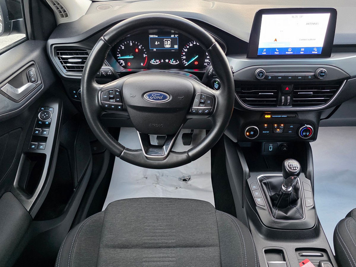 Ford Focus Wagon 1.5 diesel 120 HP Euro 6d, viti 2019 me rreth 156.000 km, ofron motor ekonomik dhe hapësirë të madhe për përdorim urban dhe udhëtime të gjata. Kambio manuale me 6 marshe siguron drejtim të balancuar dhe efikas. Pajisje Active përfshijnë klimë automatike dy-zonëshe, navigacion me ekran me prekje, Bluetooth handsfree, AUX, kompjuter bordi, timon lëkure multifunksional, cruise control me sistem distance, Auto Hold, sensorë shiu dhe drite, lane assist dhe njohje të shenjave të trafikut, kamerë parkimi dhe sensorë parkimi, drita Full LED, disqe alumini 17” me goma të reja dhe roof rails. Station wagon ekonomik dhe i përshtatshëm për familje dhe udhëtime.