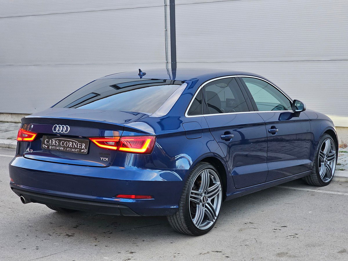 2014 üretim, 2015 ilk tescil Audi A3 Limousine (Sedan) 1.6 TDI 81 kW (110 HP), 6 ileri manuel ve 220.000 km’dir (servis geçmişli). İlk boyası korunmuş, kusursuz ve masrafsız durumdadır. Tescile kadar tüm vergiler (gümrük, TIF, homologasyon ve resmi tercümeler) ödenmiştir. Donanımında Recaro koltuklar, üç kollu çok fonksiyonlu deri direksiyon, tempomat, ekranda gösterimli park sensörleri, otomatik far ve yağmur sensörü, LED Bi-Xenon farlar ve LED stoplar, çift bölgeli klimatrionik, 19” S Line alaşım jantlar, RS Optic ön ızgara, Drive Select sürüş modları, ESP ve ABS yer alır. Düşük yakıt tüketimli, bakımlı ve kullanıma hazır bir sedan modelidir.